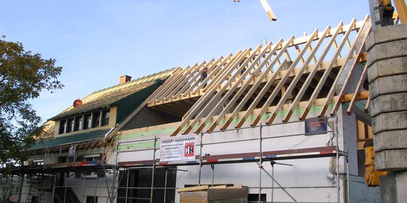 An das bestehende Wohnhaus wurde ein Bürotrakt angebaut, so dass das komplette Gebäude saniert und dann gemeinsam neu eingedeckt werden konnte.